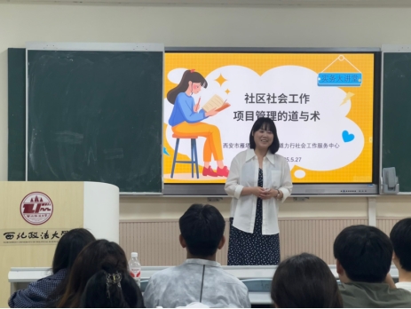 2025年5月27日,西安市雁塔区大雁塔街道力行社会工作服务中心主任侯叶丽受邀莅临我院,为同学们带来了一场主题为“社区社会工作项目管理的道与术”的实务讲座。