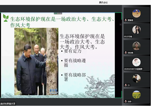 会议的最后,在交流互动这一环节中,张炳淳主任为同学们介绍了关于生态环境执法的重要性,同学们也纷纷表示,会在今后积极关注环境问题,参与志愿活动,继续学习有关于生态环境执法的相关内容,以饱满的知识储备响应国家关于环保的号召。