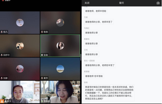 讨论环节,同学们积极提出自己在实务实践中的疑惑及困境,如“社工在亲密关系中价值中立的应用困境、在实务实践中机构利益及案主利益的平衡、实务价值观不对等的情况下社工应如何处理此类情境?” 基于这些提问陈林老师依据个人丰富的实务经验及理论基础对大家的提问做了全面深入的解答。整个讲座使同学们收获良多,本次讲座圆满结束。