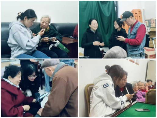 2022级社会工作专业学生曹子若用通俗易懂的语言为老教师们详细讲解了智能手机的使用方法,包括微信、抖音、美团优选等常见软件的操作流程、手机支付的安全使用、日常出行乘车导航等实用知识。老教师们认真学习,相互讨论交流。