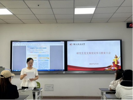 根据校党委和院党委关于党纪学习教育的部署及相关安排,研究生党支部于6月5日下午15:00在5教204召开党纪学习教育专题学习会议。会议由支部书记慕婧主持,支部全体党员参会交流学习。