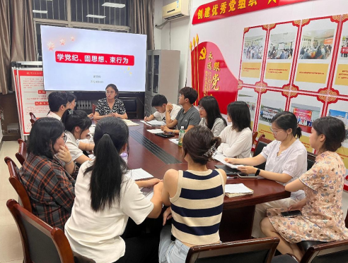 武雯梅以习近平总书记关于党的纪律建设的重要论述为切入点,“学党纪:正确理解《条例》修订的背景意义;固思想:深刻把握《条例》的主旨要义;束行为:全面贯彻《条例》的实践要求”三个方面,通过用案释学、以案促学的方式,结合实际案例,进行了全面生动深入的讲解。她要求,支部全体党员要把学习贯彻《中国共产党纪律处分条例》作为一项重要的政治任务,做到逐章逐条学、联系实际学,真正把纪律规矩转化为政治自觉、思想自觉、行动自觉,打牢遵规守纪的思想基础。党课结束后,支部成员通过轮流发言、思考讨论的形式,将《条例》内容具象化、案例化,进一步巩固内化党课学习成果,确保党纪学习教育细致入微、行之有效。