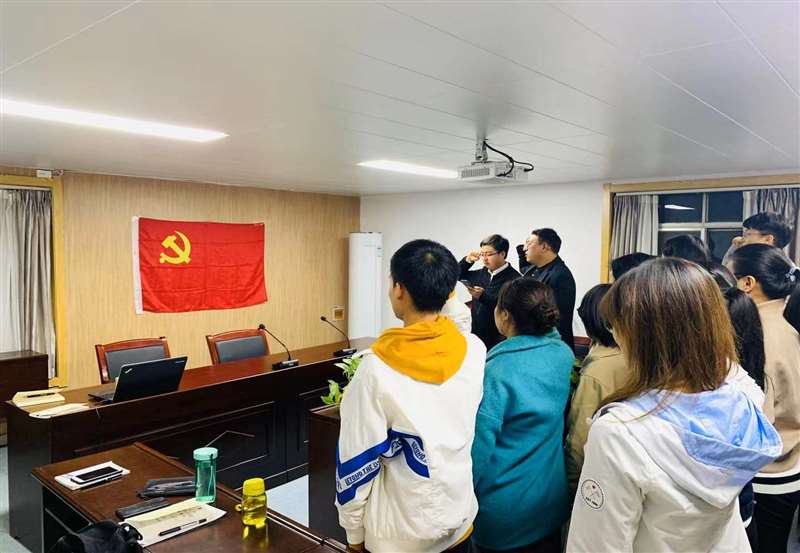 最后,全体支部党员以集体宣誓的方式,重温入党誓词,党员们面对鲜红的党旗,高举右手庄重宣誓。庄严肃穆的宣誓活动,使每一位党员再一次接受心灵的洗礼。