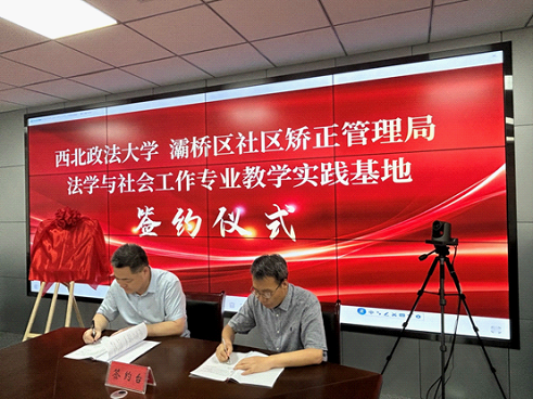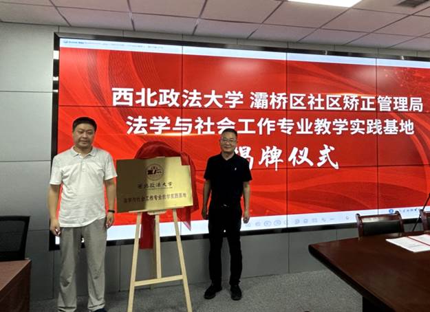 随后,山小琪院长与灞桥区司法局马俊良局长签署了战略合作协议,寇汉军书记与西安市司法局张兴平副局长共同为“法学与社会工作专业教学实践基地”揭牌。
