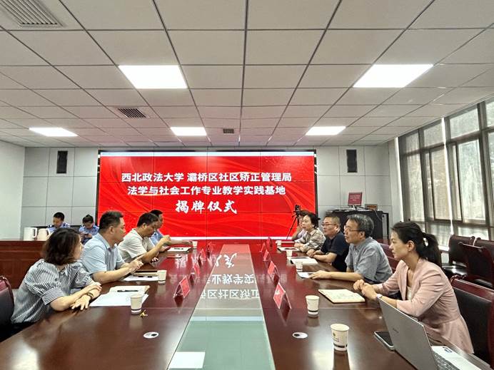 为更好地服务地方法治建设,培养高素质法治人才战略储备,构建实务部门与学校联合培养新型法治人才机制,2023年7月25日下午,赌场 与西安市灞桥区司法局在西安市灞桥区社区矫正管理局会议室举行战略合作签约暨“法学与社会工作专业教学实践基地”揭牌仪式。西安市司法局副局长张兴平、西安市司法局社区矫正管理局局长高辉、西安市司法局社区矫正管理局四级调研员杨辉、西安市灞桥区司法局局长马俊良、西安市灞桥区司法局副局长赵莹以及学院党委书记寇汉军、院长山小琪、党委副书记 副院长上官亚敏、李岚林副教授和学院学生代表等出席了活动。签约揭牌仪式由灞桥区司法局副局长赵莹主持。
