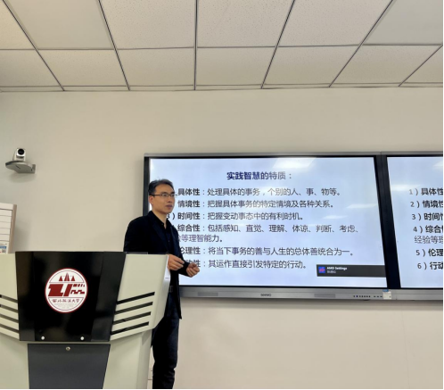 刘宇教授的讲座脉络清晰、层次分明、内容丰富充实,使同学们开拓了理论视野,加深了对“实践智慧”的理解。在交流环节,在座同学踊跃发言,向刘教授提出问题、交流思想,刘教授对同学们的疑问一一进行了细致解答,同时对与会同学积极思考的态度表示赞赏。深入的讨论后,此次讲座在热烈的掌声中取得了圆满的成功。