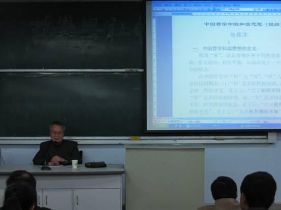 “智慧大讲堂”邀请陕西省社科联主席、我校资深教授赵馥洁先生在三号教学楼3738教室做了题为《中国传统哲学中的和谐思想》的讲座。赌场