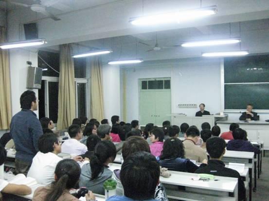院长总结了报告。首先对赵教授的精彩报告表示感谢,并对正常报告做了精彩的总结。他谈到,最要害的关系的人与人的关系,伦理的觉悟是人最后觉悟的最后觉悟,其精彩见解也博得在场师生的掌声。 21:40许,报告结束,同学以掌声送走了老师。相信,这场思想的盛宴也是沉思的开始。