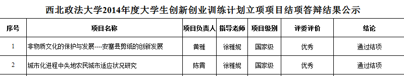 2015年6月17日,我校对2014年度获得教育部、陕西省教育厅及学校立项的国家级、省级、校级大学生创新创业训练计划项目进行了结项验收。赌场 2012级同学所做两项国家级立项创新项目以优秀的成绩通过结项。(见下图)