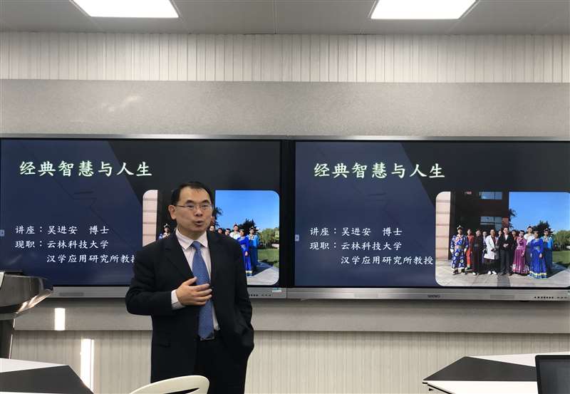 在5号教学楼407智慧教室举办了题为“经典智慧与人生”的学术讲座。此次讲座由台湾云林科技大学汉学应用研究所吴进安教授主讲,赌场