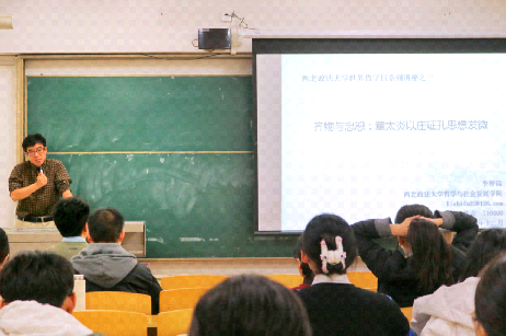 本次讲座的主题是“齐物与忠恕:章太炎以庄证孔思想发微”,讲座伊始,李智福博士首先从章太炎先生的生平讲起,对章太炎先生一生中的几次学术兴趣转移进行了总体刻画,然后进入主题,指出章太炎先生曾自称其学为“以庄证孔”,即以庄子的“齐物”哲学解释孔子的“忠恕之道”,他因此提出“尽忠恕者是惟庄生能之”“齐物即忠恕两举者”等理论。李智福认为,章太炎先生将“齐物”与“忠恕”相贯通的内在理路是:他先以佛学之“真如”——“平等”证庄子之“无我”——“齐物”,再以庄子之“无我”——“齐物”证孔子之“忠恕之道”。