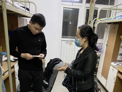 慕婧老师在走访中,认真查看了宿舍环境,询问了同学们的近期生活状态及就业进展情况,叮嘱同学们在平时不仅要认真学习,及时关注各类就业信息,树立积极的就业态度,还要保持良好的生活作息,注意身体健康,加强体育锻炼;同时,慕婧老师给各个宿舍发放了师生联系卡,叮嘱同学在疫情防控期间做好个人防护,不私自外出、严格履行校园请假审批程序,如遇到问题及时根据师生联系卡联系相关老师,通过合理渠道反馈意见和建议,学院将及时进行问题汇总并做出处理,最大限度解决学生的困难和合理诉求。