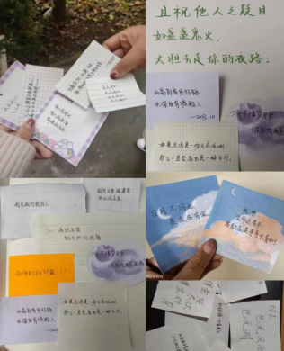 最后,各位同学写下自己喜欢的句子,进行匿名交换送到其他同学手中,将这份温暖的鼓励与关怀传递到每一个人心中。