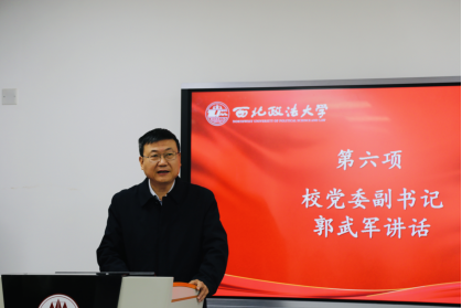 最后,郭武军代表学校对北京岳成律师事务所的慷慨捐赠表示衷心感谢和崇高敬意,同时他向同学们提出了三点希望要求,一是希望同学们不忘初心,牢记校训,从校史中感受我校红色基因,并着眼于国家、社会所需勇于学习实践,将个人的小我融入社会的大我,肩负起新时代青年的责任和担当。二是希望同学们求真务实,笃行致远,珍惜大学时光,不负青春韶华,努力提高综合素质,为中国式现代化建设贡献青年力量。三是希望同学们常怀感恩和奉献之心,努力提升修炼自我,让自己成为德智体美劳全面发展的复合型人才,用自己的成绩和贡献回报国家、回馈社会,在奉献中实现人生更大价值。