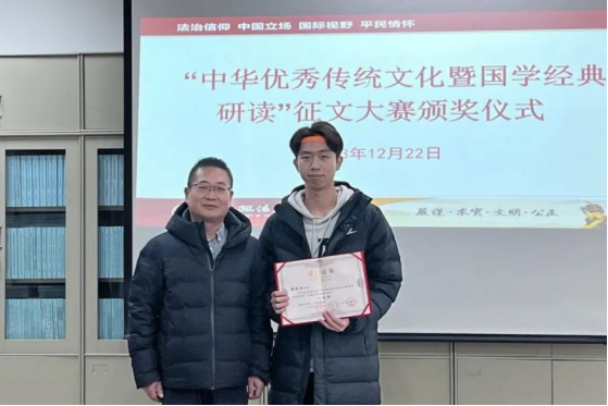 寇汉军表示,本次大赛以继承和发扬中华优秀传统文化为核心,与爱国主义教育法中强调的爱国主义教育内容相契合,意在进一步培养广大青年的文化自觉与文化自信,引导广大青年感悟思想伟力,凝聚奋进动能,争做担当民族复兴大任的时代新人。他向同学们提出三点要求和建议:第一,应扎实学习课堂文化知识,主动选修与优秀传统文化教育相关的课程,加深对中华优秀文化的了解,学习并充分运用古圣先贤传留下来的文化思想理论,厘清并汲取其中的精髓思想和智慧,进一步提升文化修养和个人素质,增强民族文化认同感和自信心。第二,积极参与经典精读大赛、征文大赛、主题团课等校园文化活动,在丰富校园文化生活的同时增强爱国意识,感悟思想伟力,汲取奋进力量,进一步强化民族文化自豪感和爱国主义情思。第三,积极参加丰富多彩的校外实践活动,用脚步丈量祖国大地,用内心感悟时代脉搏,结合并充分运用所学专业知识,在理论联系实际中进一步增强专业素养与综合能力,进一步坚定扎根人民、奉献国家的理想信念,展现出西法大学子奋发有为的青春风采和精神面貌。