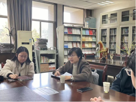 在格物楼二楼资料室召开2024届学生考研复试指导大会。中国哲学教研室俞秀玲、李智福、社会学教研室李颖晖、社会工作教研室任娟娟以及2024届部分考研学生参加会议,会议由慕婧主持。