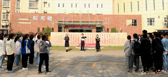 1937年10月23日,毛泽东主席为陕北公学成立题写“要造就一大批人”的重要题词,83年后的同一天,我校长安校区校务楼前镌刻着这一题词的大理石装扮一新。赌场 学子们列队围拢在周围,首先由徐聪艳同学做“弘扬优良传统,争做时代新青年”的主题演讲。她在演讲中带领同学们一起重温毛主席题词、走进西法大光辉办学历程,热情赞颂了革命前辈的崇高品质和奋斗精神,号召同学们勇担重任、努力成才,践行“老延大”优良传统,做优秀的西法大学子,成为有理想、有本领、有担当的新时代青年。