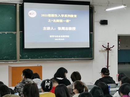 讲座伊始,张周志教授对全体新生表示欢迎,对于同学们成功晋级大学阶段的学习,表示衷心的祝贺。