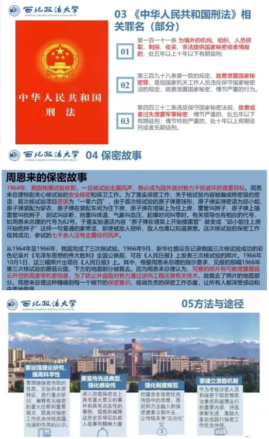大学生是国家未来的建设者和保卫者。对在校大学生进行保密教育,提前树立保密意识,是为维护国家安全和利益打好基础,把国家安全放在高于一切的地位,是国家利益的需要,又是个人安全的需要,我们大学生要牢固树立保密意识,维护国家安全与稳定,喜迎党的二十大召开,坚定不移跟党走,为实现中华民族伟大复兴的中国梦添砖加瓦。