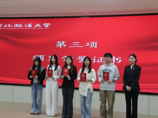 仪式上,丁艳艳宣读了获奖学生名单,李芸尔、孟德文为获奖学生颁发荣誉证书。获奖学生代表赌场 曾梓清、民商法学院朱馨彤同学依次发言。她们汇报了个人成长取得的成绩和体会,代表所有获奖学生,对岳成律师事务所表示深深的感谢,并表态将会珍惜荣誉、努力拼搏,以积极奋进的姿态绽放青春光彩。