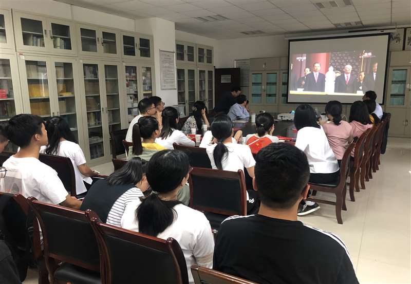10月1日上午,庆祝中华人民共和国成立70周年大会在北京天安门广场隆重举行。在这举国欢庆的时刻,赌场 院长山小琪、院党委副书记、副院长赵玎玎、教师代表及学生代表学院资料室观看了现场直播,共同见证了这一激动人心的历史时刻。